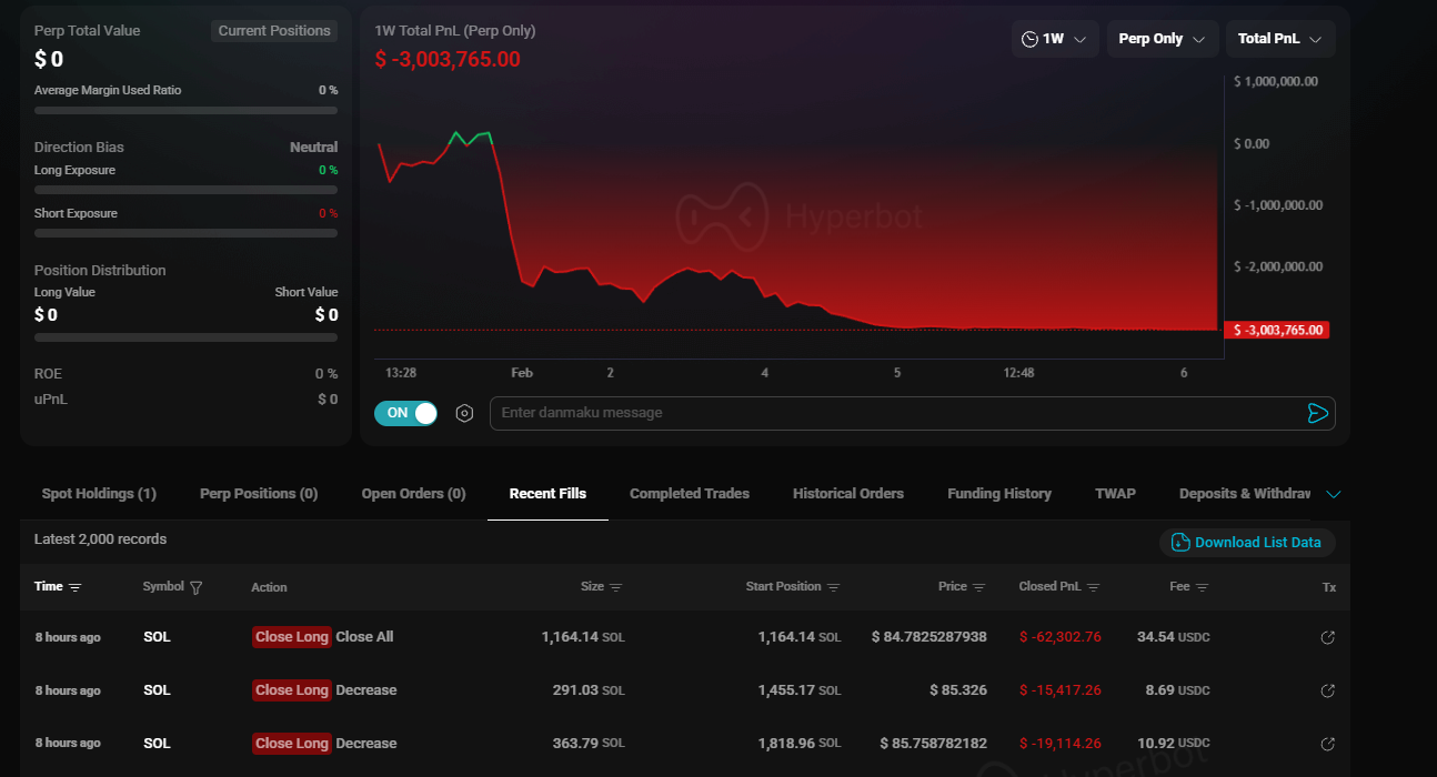 Is the account zeroed out? Or is there dust left? Click below to access the Hyperbot terminal and view the final resting place of this SOL whale: