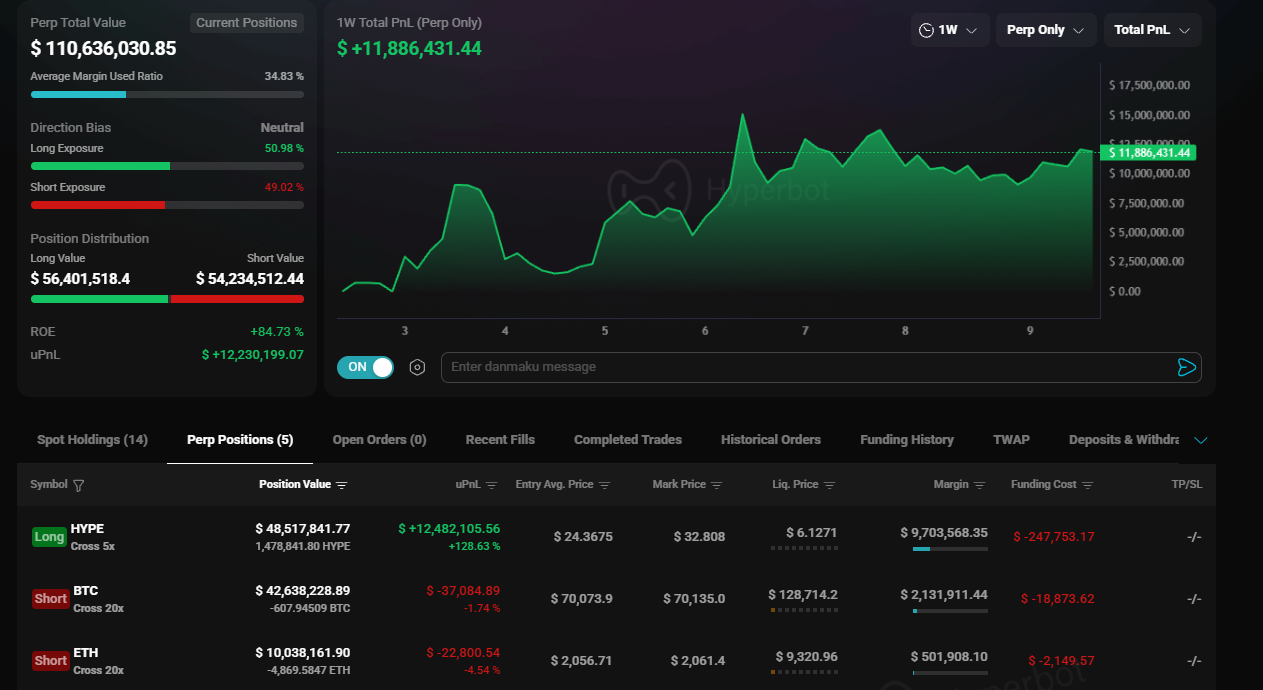 - Safety Margin: HYPE would need to crash below $12 for this account to face liquidation risk. This conservative structure allows them to weather extreme volatility that would wipe out retail traders.