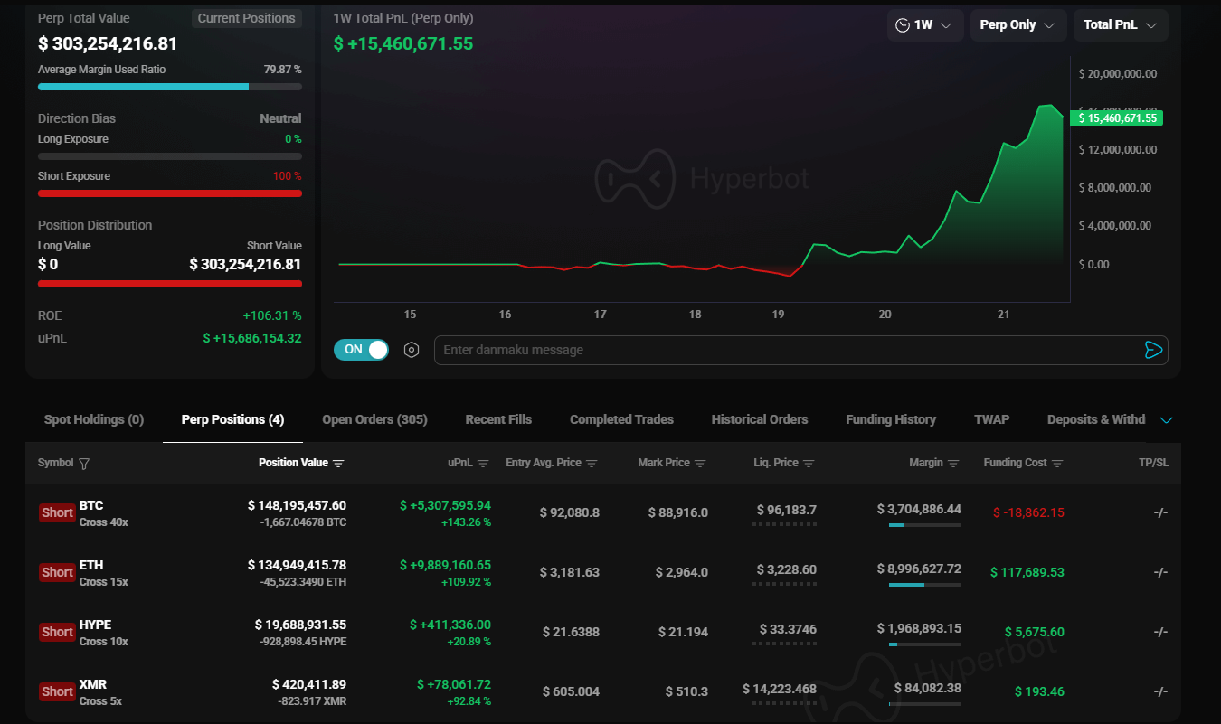 Executing a $300M position on a single DEX signals institutional trust in Hyperliquid’s Depth. The trader calculates that the platform has sufficient absorption capacity to allow them to exit without suffering catastrophic Slippage.
