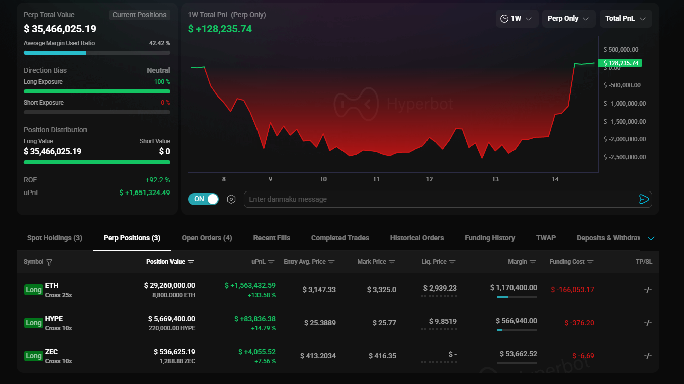 Just hours ago, as Ethereum (ETH) shattered the $3,300 resistance level, Hyperbot’s on-chain radar confirmed that the Hyperliquid account linked to Machi Big Brother (Jeffrey Huang) has executed a textbook "turnaround."Yesterday, this position was dancing on the razor's edge of liquidation. Today, that same $33 million, 16x leveraged long position has transformed into a high-velocity alpha generator.