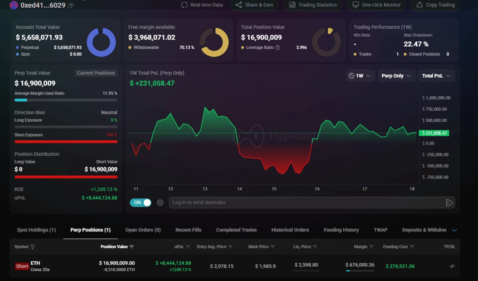 - Position Size: 8,510 ETH (Notional Value: $16.9 Million)