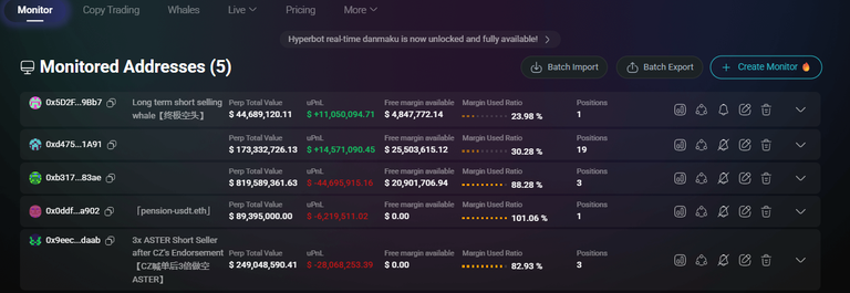If you already have a list of high-win-rate whales or potential market makers you want to monitor, follow these steps: